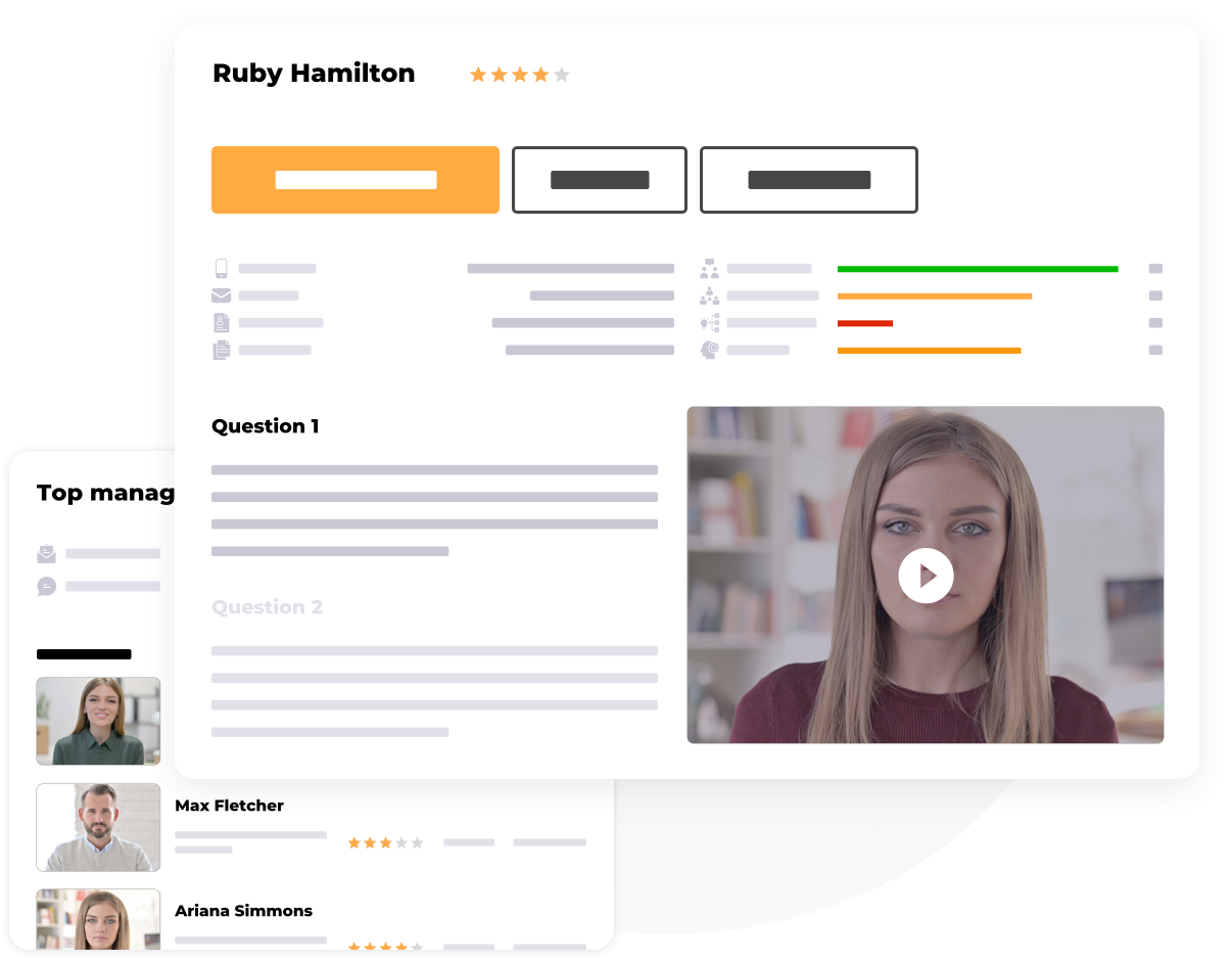 AI assistant will help to set score to candidate according his video answers. And our virtual video-recruiter talking-head will make your on-demand interview more attractive and interactive.